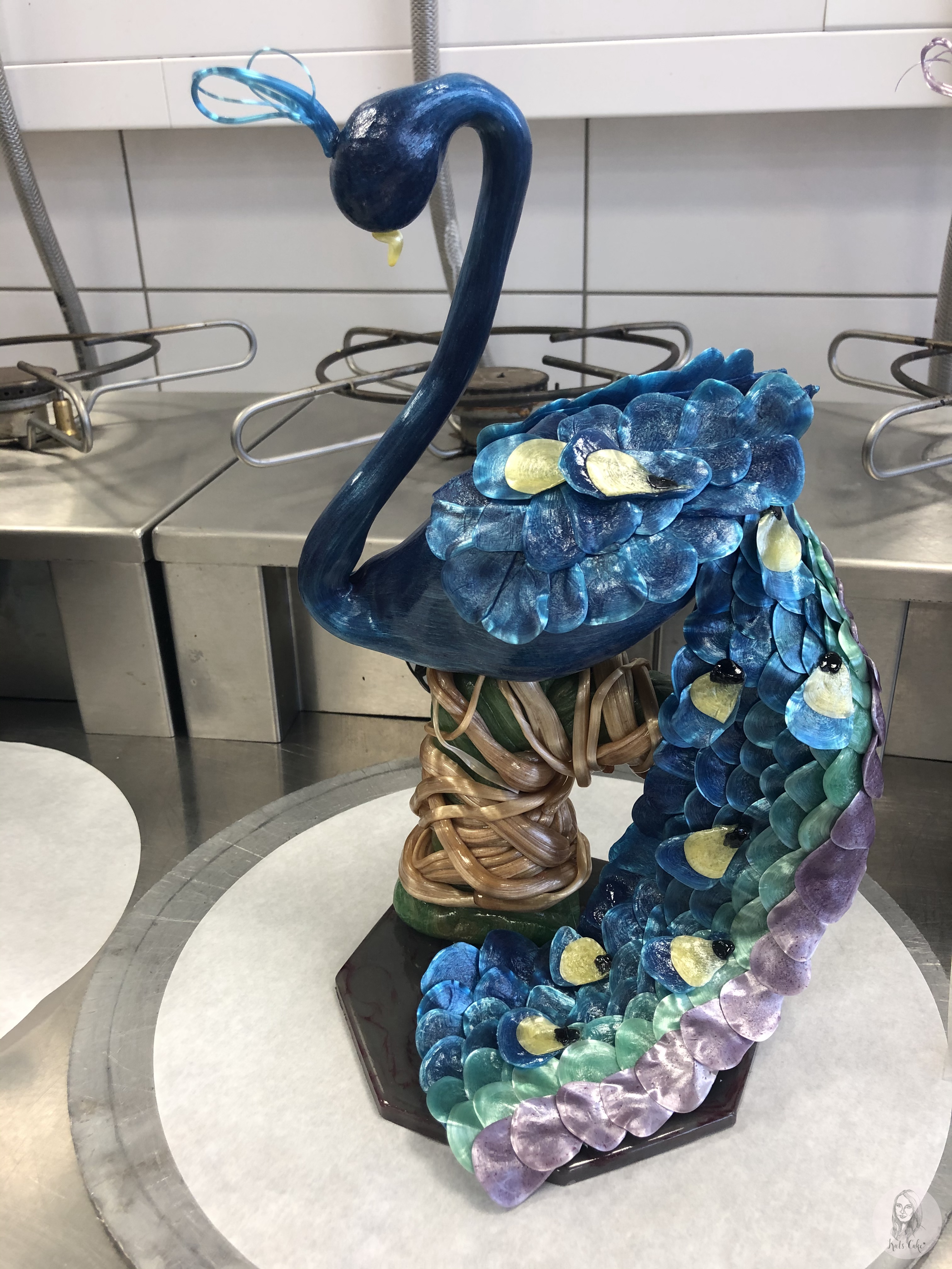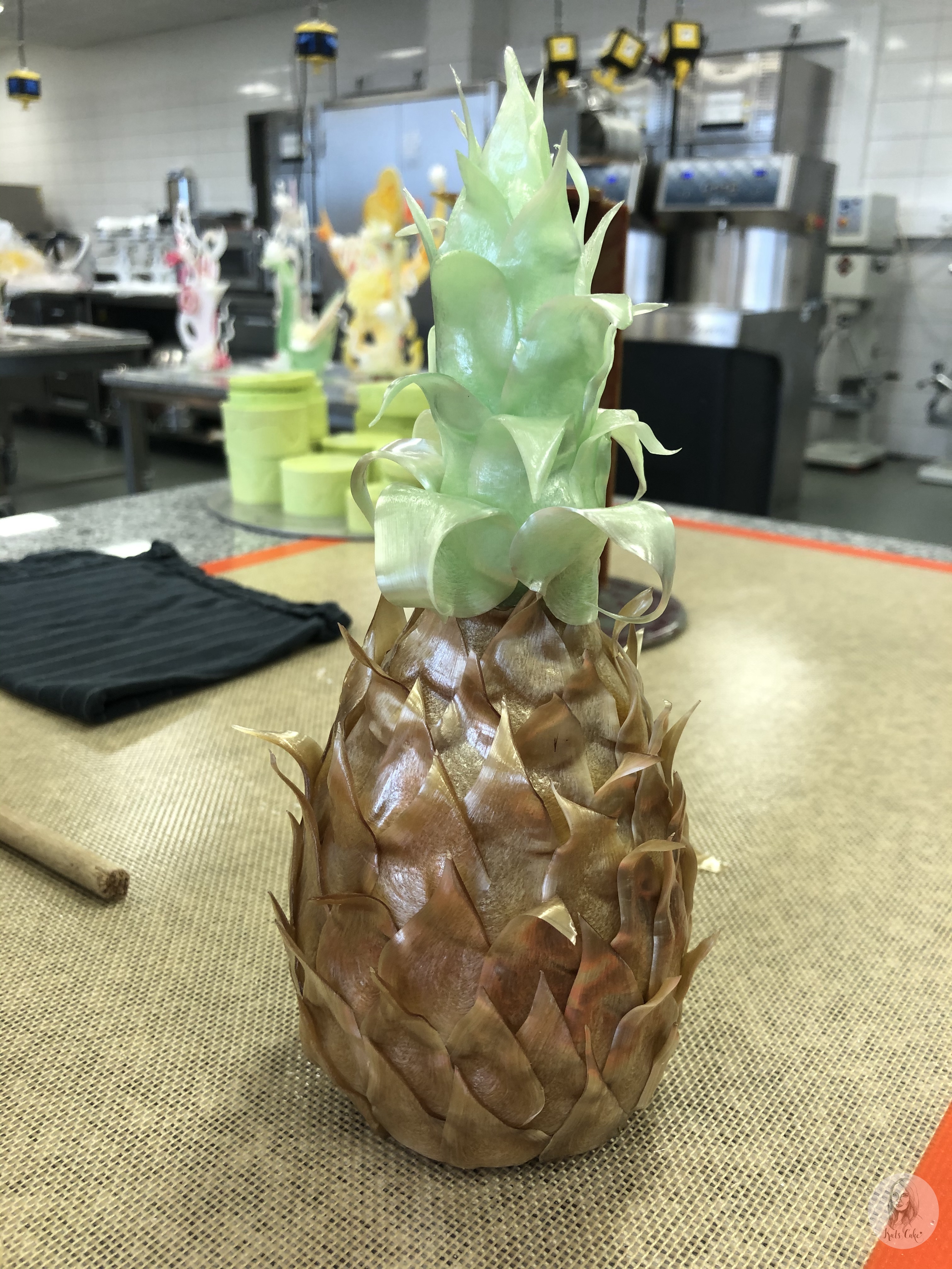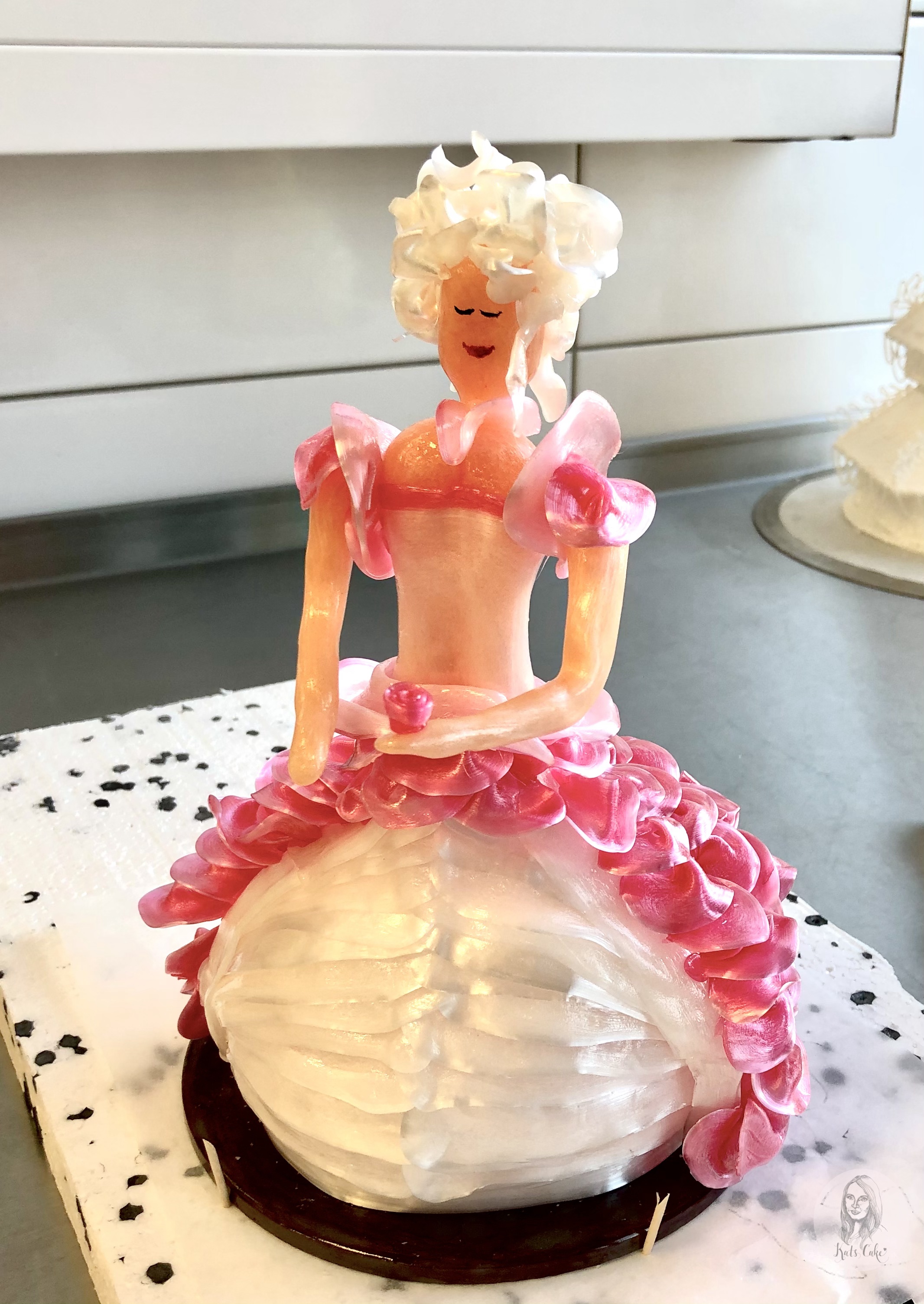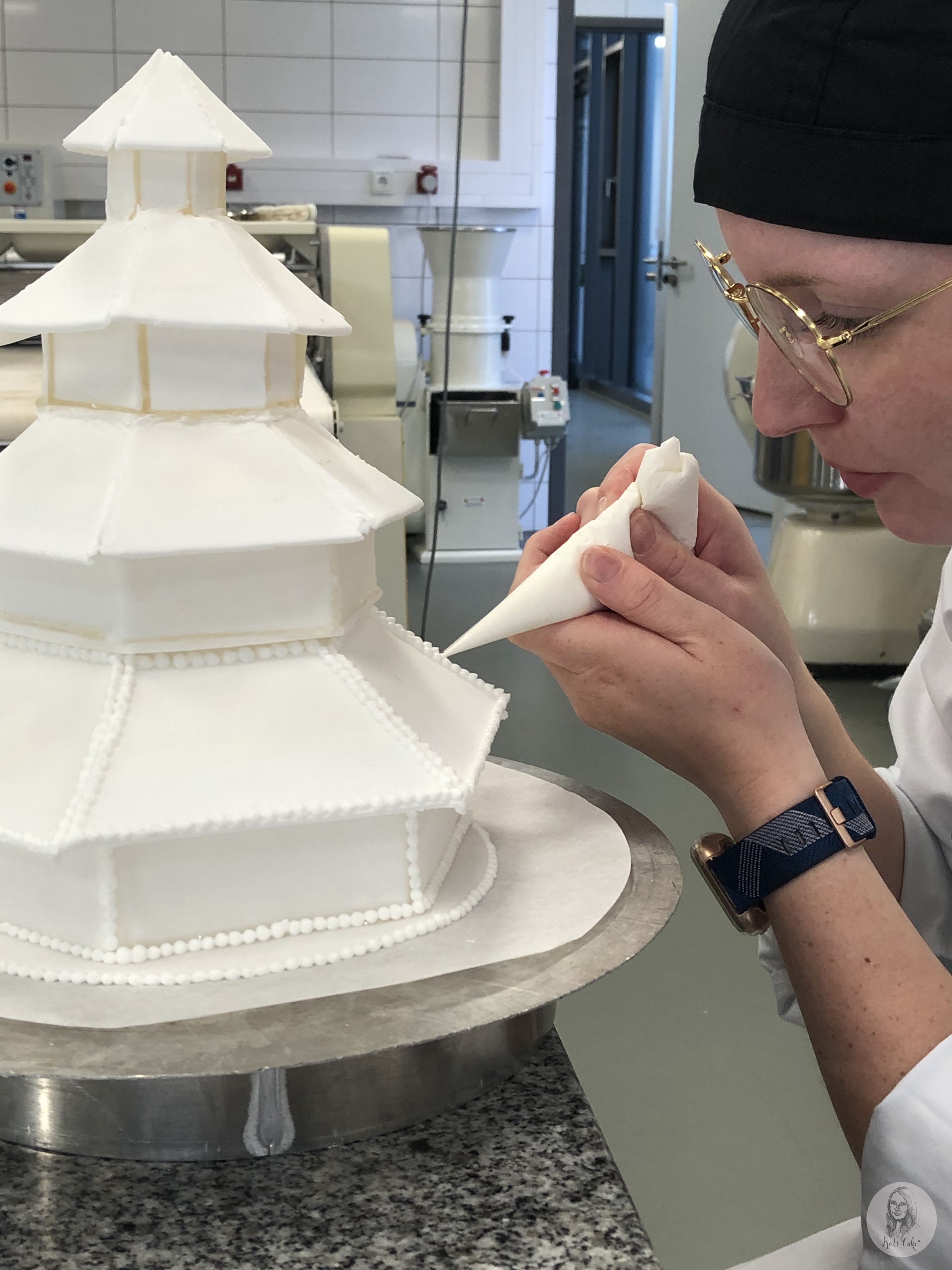 Eine Pagode zusammen gesetzt aus Gelatinezucker und dekoriert mit Eiweißspritzglasur.