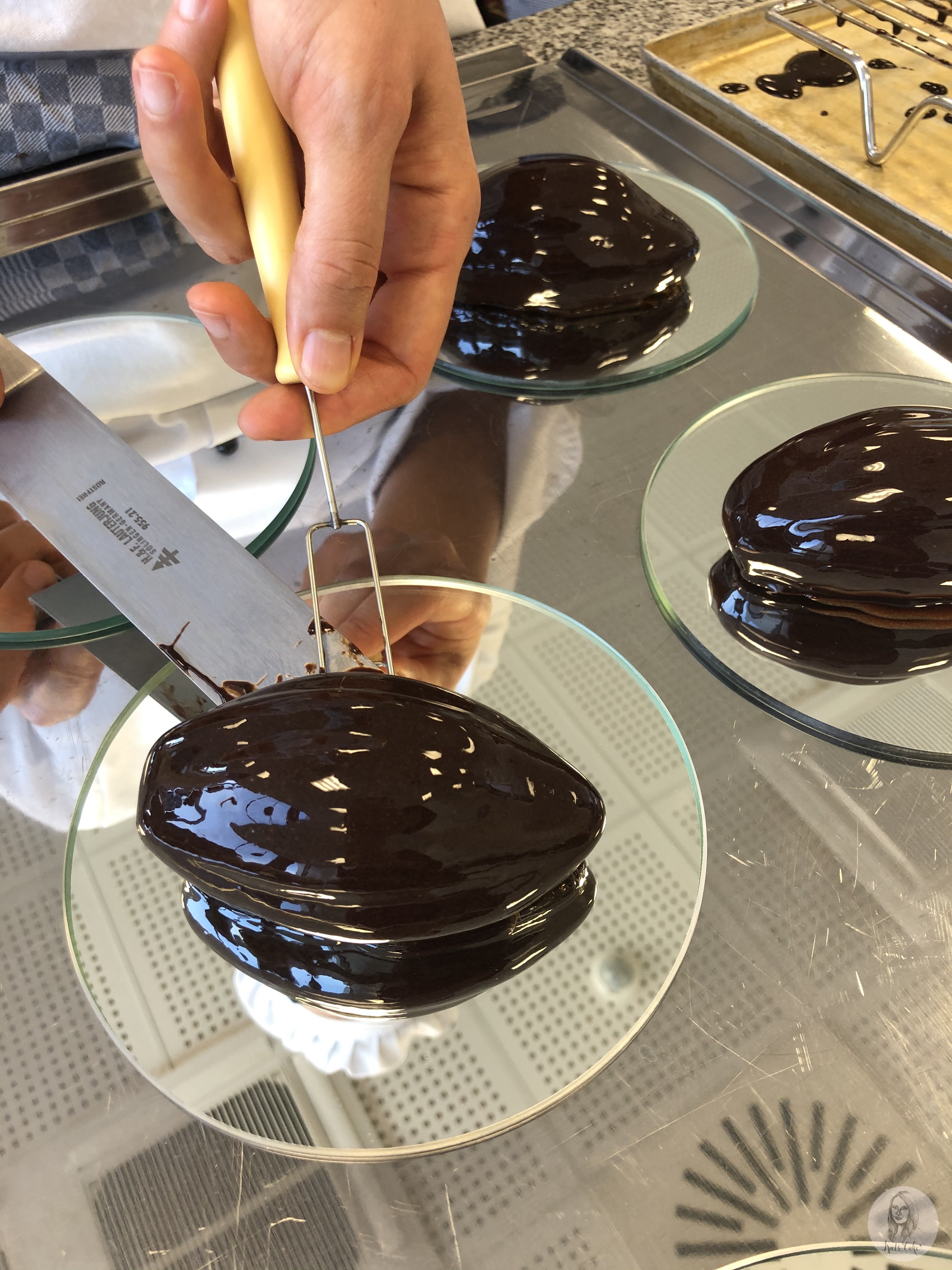 Herstellung verschiedenster Torten und Törtchen, darunter diese Mousstorten.
