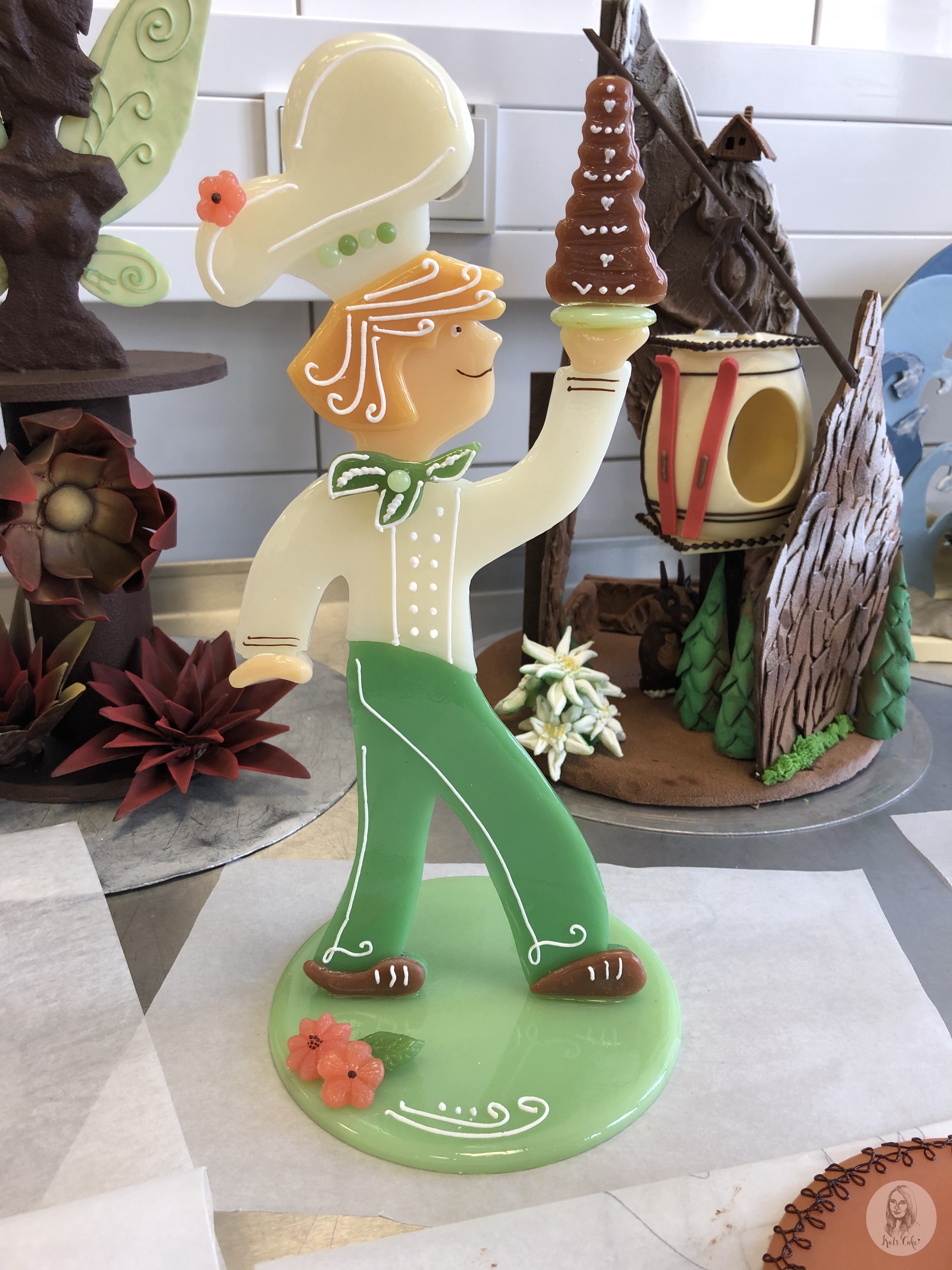 Kuvertüreverarbeitung und Herstellung eines riesigem Eifelturms